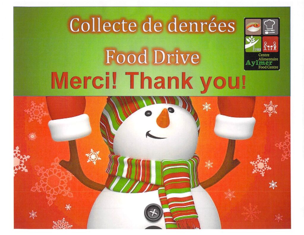 The Aylmer Food Centre is very grateful and thanks us on behalf of all those who are less fortunate.